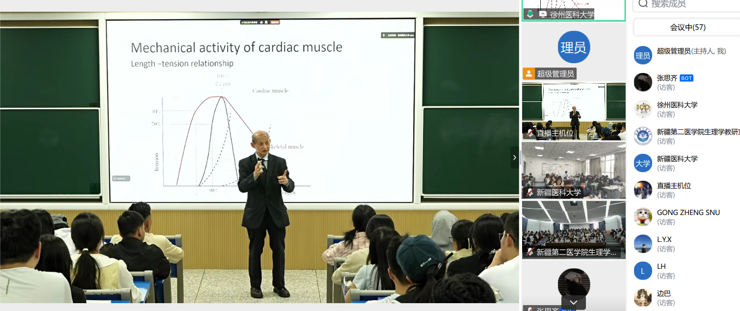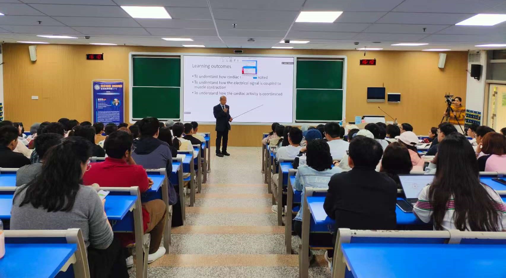 本次活动邀请到江苏省外国专家工作室专家、英国萨里大学吴常皓教授作为主讲教师。吴教授以其深厚的学术造诣和丰富的国际教学经验,围绕生理学领域的核心知识与前沿进展进行了系统梳理与生动讲解。课程内容既立足基础,又放眼国际生理学前沿动态。课堂上,吴教授深入浅出的讲授方式、生动的案例剖析以及与前沿研究的紧密结合,深深吸引了线上线下聆听的师生,极大拓宽了其学术视野。课程结束后,多校师生围绕课程内容、科研思路以及未来发展规划等,与吴常皓教授进行了热烈讨论,现场及线上互动气氛活跃,大家共同期待未来能有更多机会参与到此类高水平的国际化教学交流活动中。
