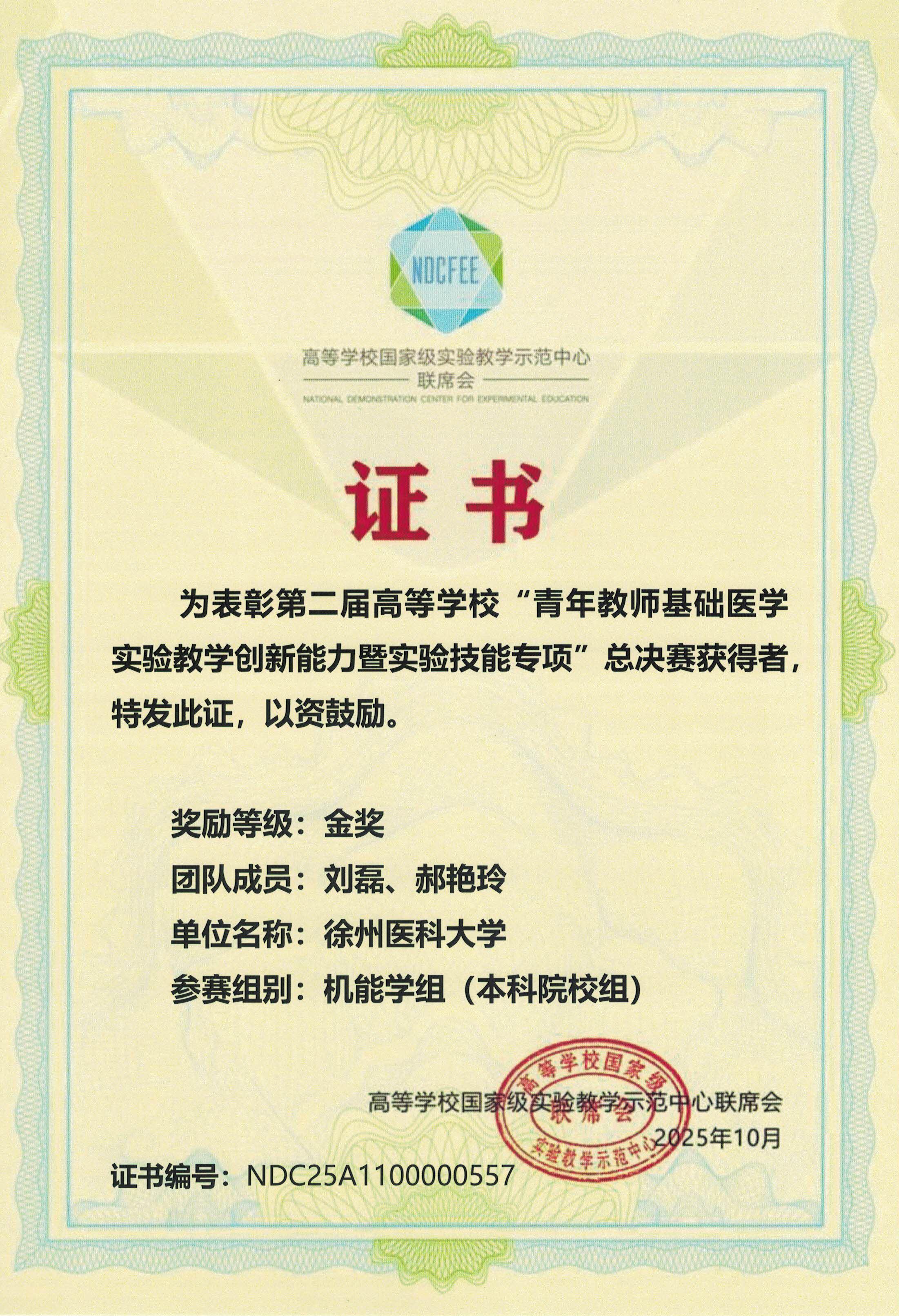 本次大赛以“提升实验技能,创新医学教育”为主题,由高等学校国家级实验教学示范中心联席会基础医学组、高等学校基础医学教师实践技能协同创新发展联盟联合主办,桂林医科大学承办。赛事吸引全国 79所高校的 143 支参赛队伍同台竞技,设人体解剖学组、人体病理学组、人体组织学组、机能学组4个赛道。我校4支参赛队伍凭借扎实的理论功底、精湛的实验技能和出色的现场表现,最终脱颖而出、斩获佳绩。这既是我校长期以来高度重视基础医学实验教学、持续深化推进教学改革的重要成果,也是学校加强青年教师培养、打造高素质师资队伍的实践体现。