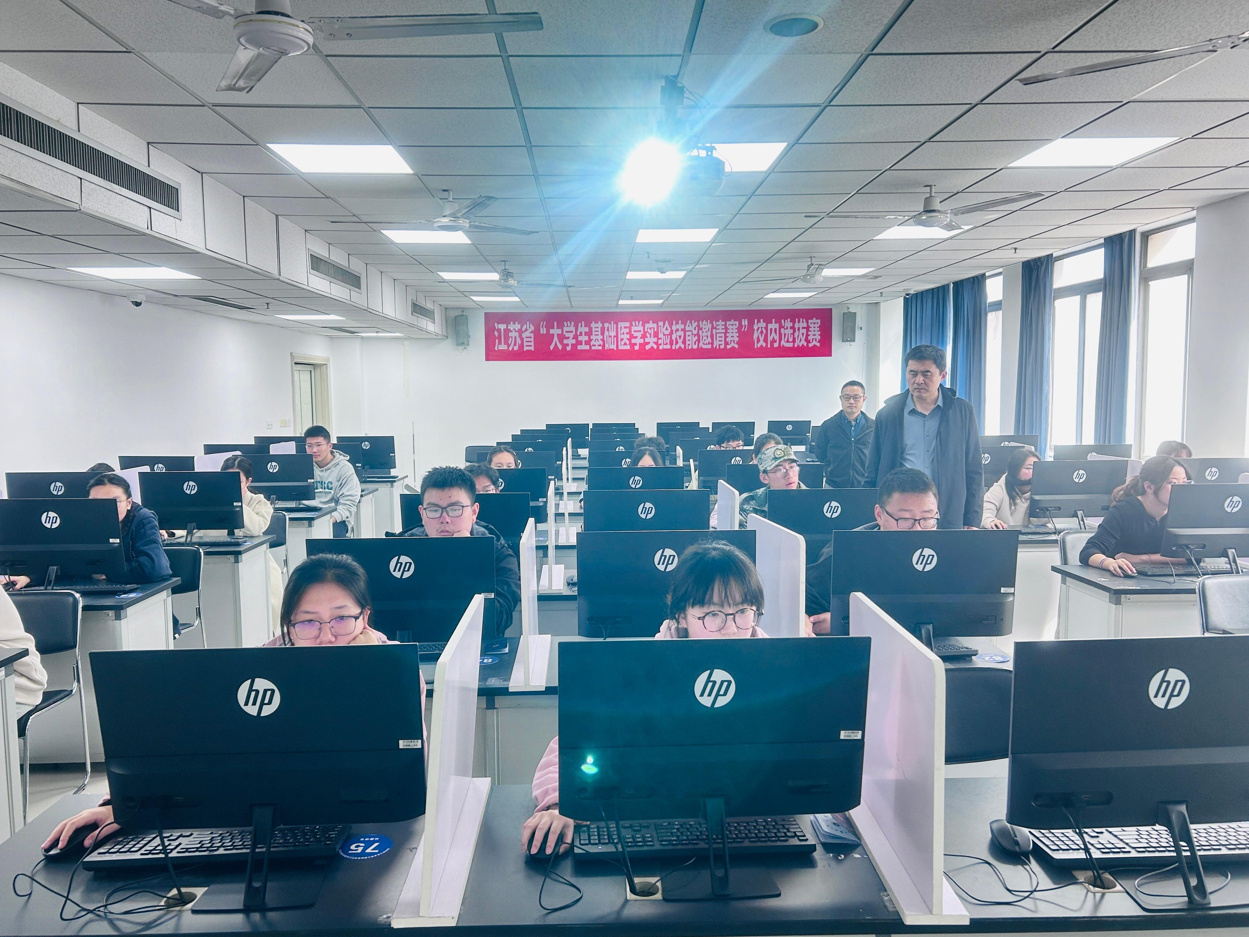 为推动新时代医学教育创新发展,落实“以能力培养为导向”的医学实验教学理念,切实提升实验教学水平,提高学生实践能力,基础医学院、基础医学国家级实验教学示范中心于10月21日-10月23日成功举办第四届江苏省“大学生基础医学实验技能邀请赛”校内选拔赛。来自第一临床医学院、第二临床医学院、麻醉学院、医学影像学院等多个学院学生参与。赛事采用线上线下结合模式,全面考察学生综合能力。线上环节聚焦学生对人体解剖学、组织与胚胎学、病理学、病原学标本的辨识水平,同步检验其对ESP虚拟标准化病人案例的分析研判能力;线下环节则以家兔为实验对象,重点评估学生在麻醉操作、备皮处理、颈动脉插管、气管插管等流程中的实验观察素养与实操技能。通过选拔,共遴选出8名同学参加省赛。
