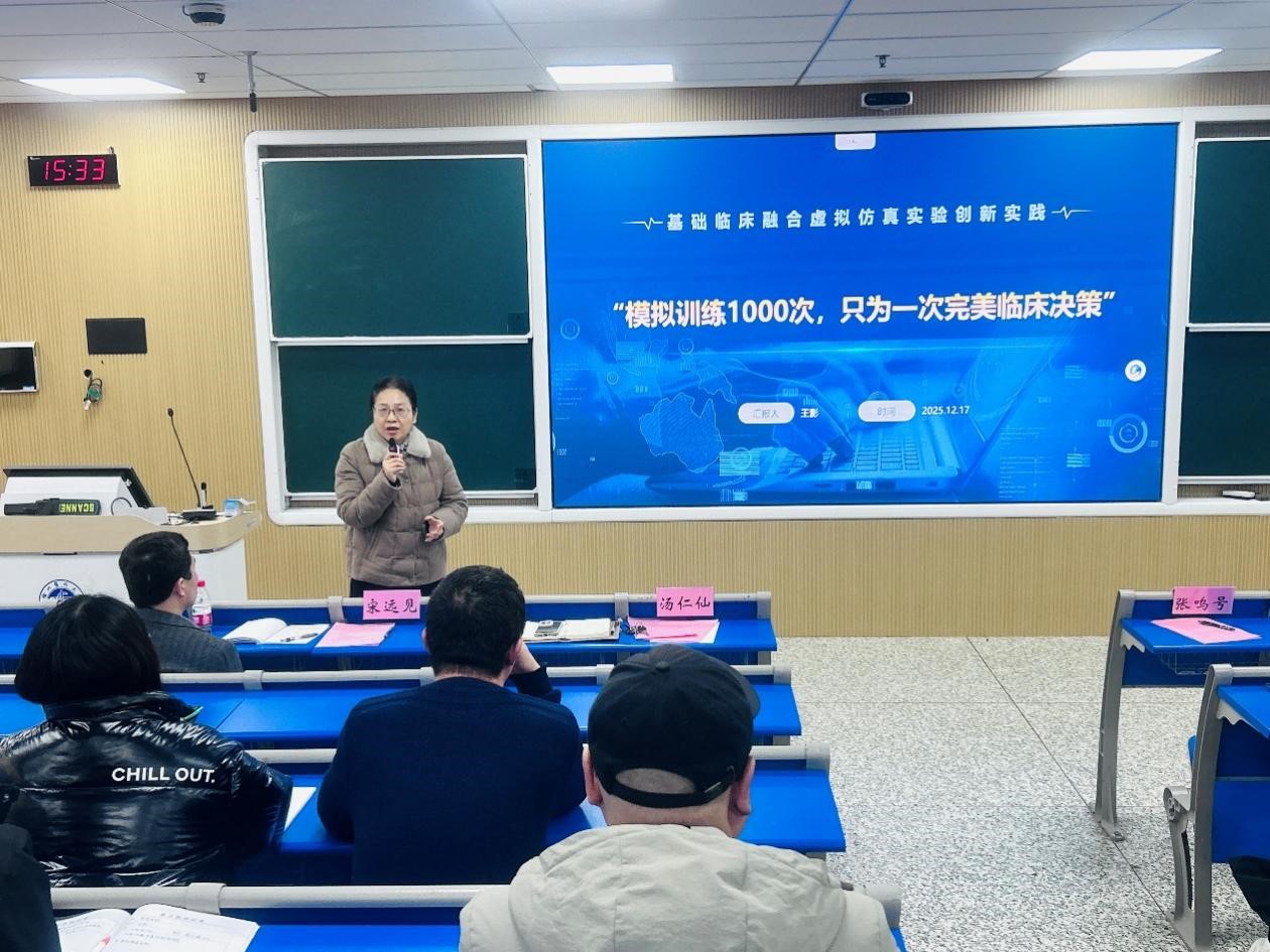 为响应国家教育数字化战略部署,推动AI技术与基础医学实验教学深度融合,共探数智化背景下医学课程建设新路径,12月17日,基础医学院在主校区教学主楼C202教室成功举办数智课程建设系列培训活动(第二期)。学院领导、各教研室主任、骨干教师及相关工作人员参加,活动由基础医学院副院长宋远见主持。