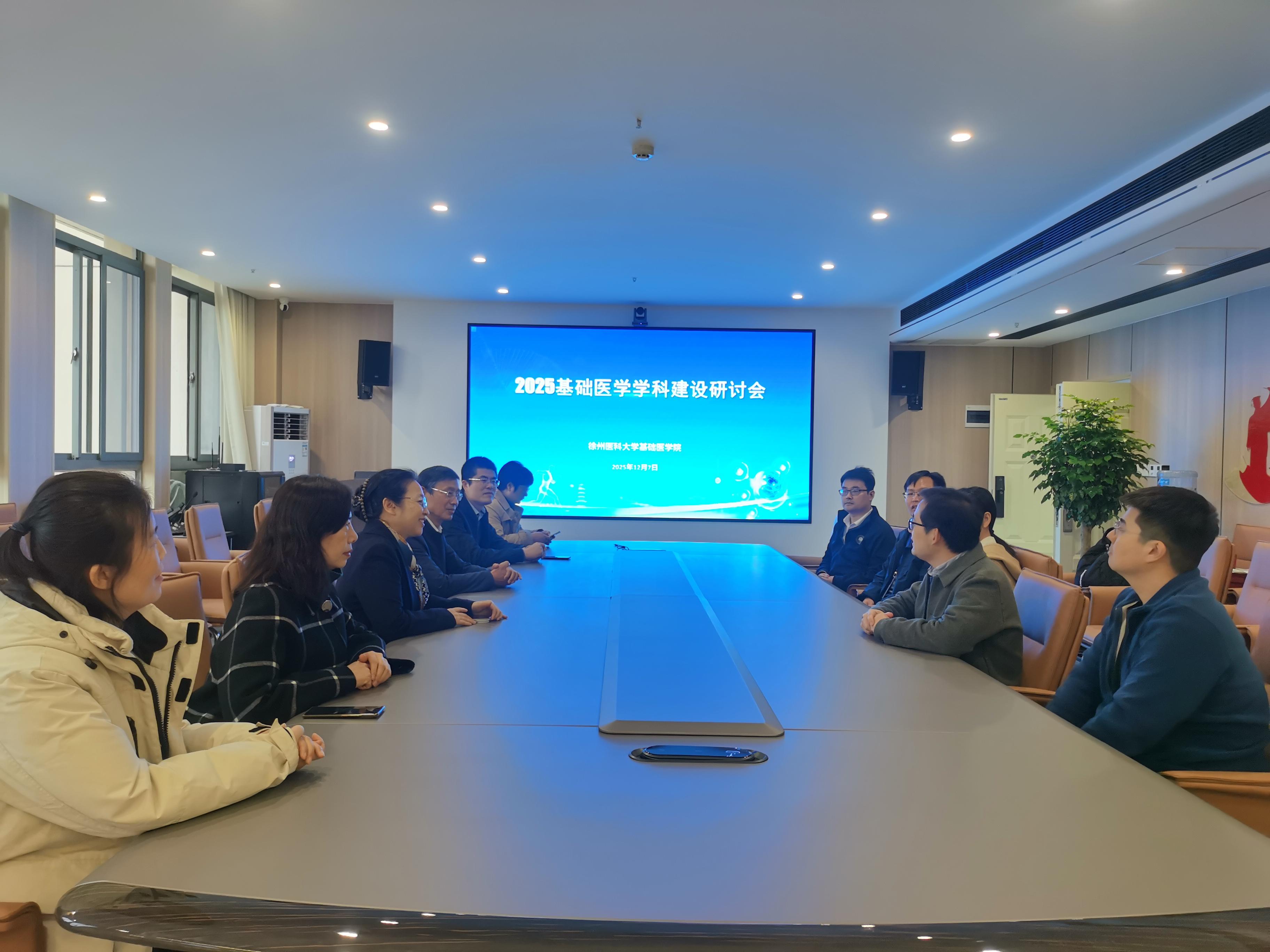 为推动基础医学学科高质量发展,明确学科建设方向,优化人才培养体系与科研创新布局,12月7日下午,基础医学院举办基础医学学科建设研讨会。会议特别邀请武汉大学夏宇尘、中科院深圳先进技术研究院司龙龙、南方科技大学张振锋、北京大学王麟、复旦大学吴艳玲5位专家,围绕基础医学学科建设和人才培养相关议题展开深入讨论。徐州医科大学原校长郑葵阳、基础医学院院长汤仁仙、副院长王文世及学科导师代表出席会议。