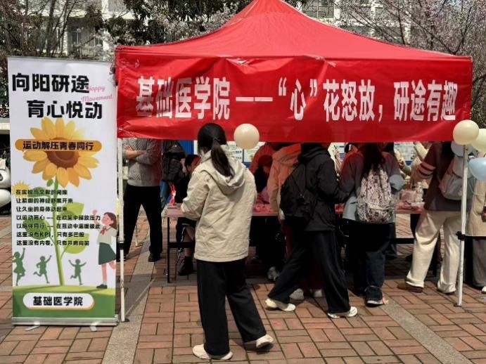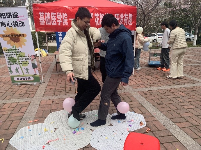为进一步缓解学生学业压力,筑牢心理健康防线,营造积极向上的校园氛围,近日,基础医学院在校园广场成功举办“‘心’花怒放,研途有趣”心理健康主题活动,以趣味运动为载体,为同学们搭建放松身心、交流互动的平台,吸引了全院百余名学生踊跃参与。