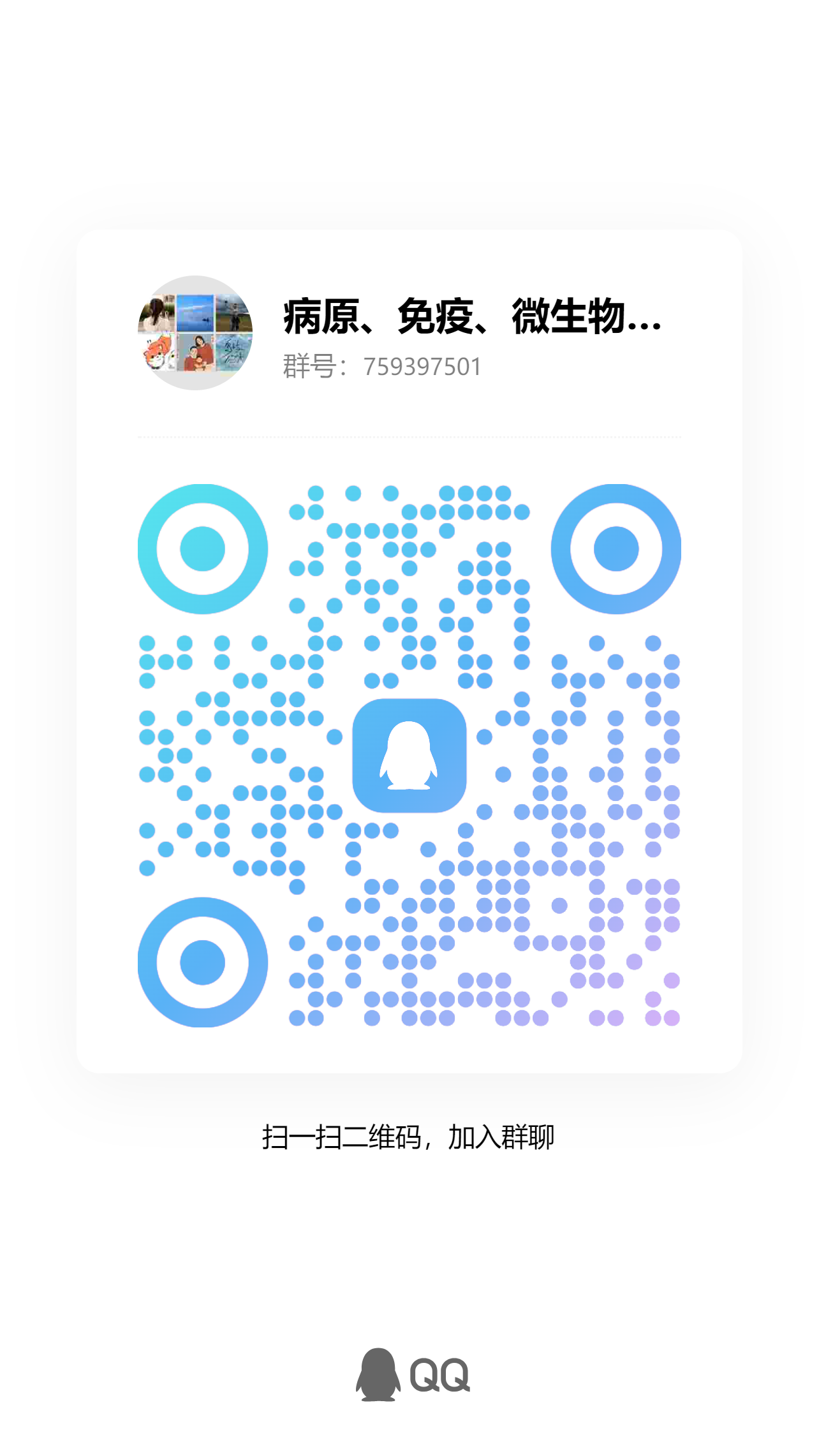 调剂病原生物学、免疫学、微生物学的考生请加入QQ群759397501,入群时备注报考专业和姓名。